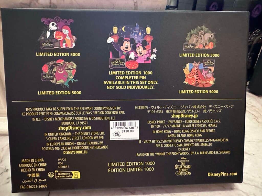 If you just can’t get enough, the Limited Edition pin set might be for you! For $110, you get 5 different pins. The Mickey and Minnie pin in the center is a boxed-set exclusive.