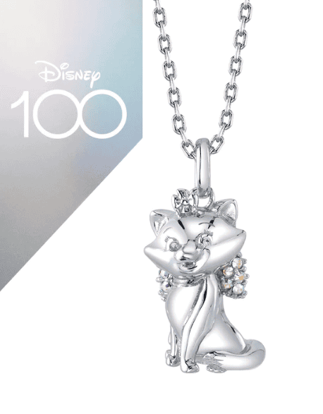 Another classic character represented in the collection is Jiminy Cricket. I just love the design of this piece because it looks like Jiminy Cricket is gracefully floating from your neck. He has a look of pure joy as he leaps in the air. There is even a little piece of cubic zirconia crystal representing his timepiece on his chest.