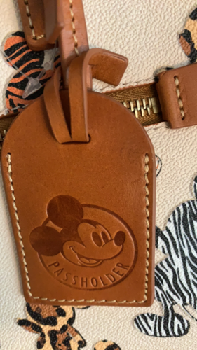 This new bag consists of an all-over Mickey print in which the Mickeys are all a different animal print! I never have enough accessories for a day at Animal Kingdom so I am super stoked about this print! This print is a cream and brown base which is completely different than the last animal print Dooney collection which was black. Now I have something to go with multiple color palettes!