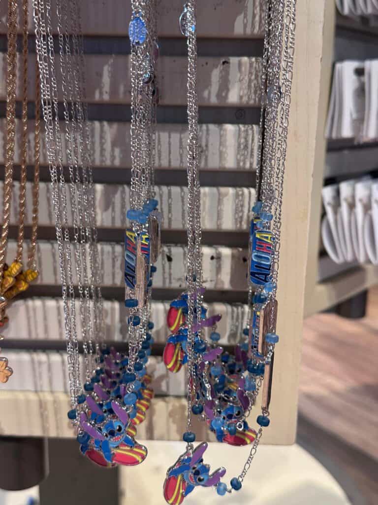 The Summer of Stitch continues with this adorable Stitch necklace! It features a surfing Stitch on a silver chain and it also says “Aloha.” I’m sure it will be a staple in your wardrobe this Summer!