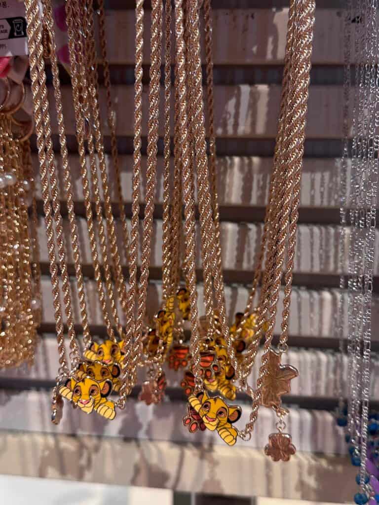 If you’re heading to Animal Kingdom, this Simba necklace is a must-have! It features an enamel Simba and paw print on what appears to be a rose gold rope chain.