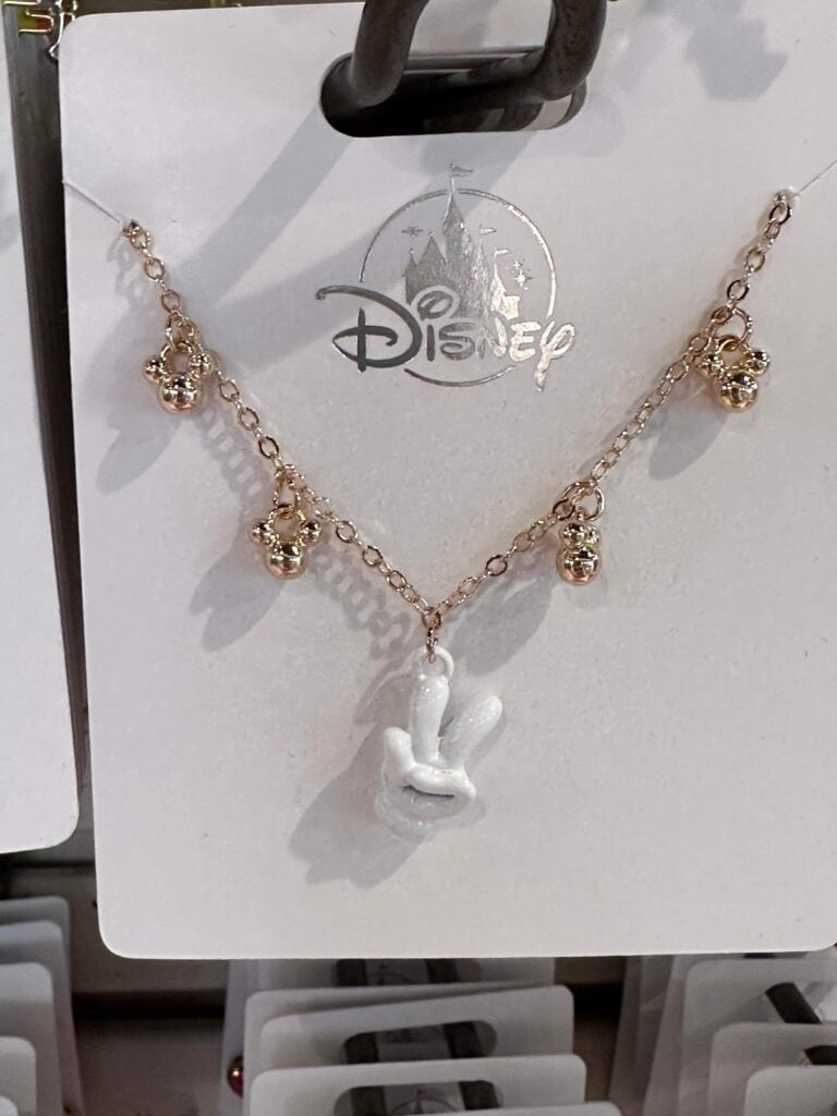 Then there are a couple of Mickey items. The Mickey dangle earrings spell “Mickey Mouse” while the necklace features Mickey heads and a Mickey hand making the peace symbol.