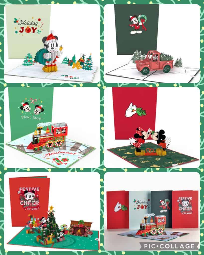 Lovepop greetings take cards to the next level. Not only do you get to send personal salutations to your loved ones, but they become dynamic by presenting a 3-dimensional papercraft. The beautiful pop-up designs create a decoration for your home rather than just another card taped to the refrigerator. There are 6 designs featuring Mickey and Minnie in everything from trains to kissing under the mistletoe.
