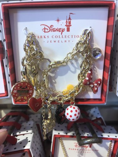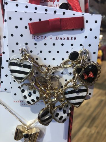 While smaller necklaces are usually more style, I love big, chunky charm bracelets! Both of these echo the same patterns that we saw on the necklaces. The dots and stripes combination on top is chic and subtly Minnie, while the bottom one has a much more playful vibe. Minnie ear hat jewelry is my current obsession, so I adore the tiny Minnie Ear charm. Both of the bracelets are only $14.99!