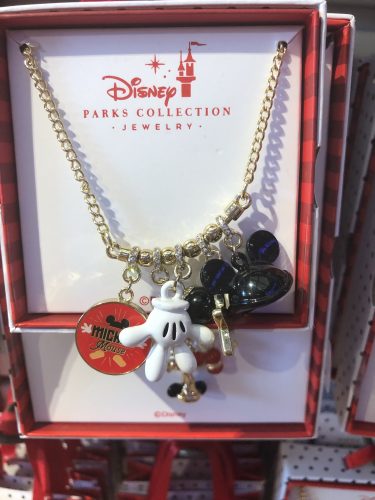 Charm necklaces are totally on trend right now, and this one is total Minnie perfection! Her bow serves as the anchor for several dangle charms all representing Minnie in some way. I am partial to the polka dot heart, but that shoe is pretty fabulous too! Mickey gets his own version too, with an ear hat, glove, and medallion. All of the necklaces retail for $24.99 and are available on the Shop Disney Parks app.