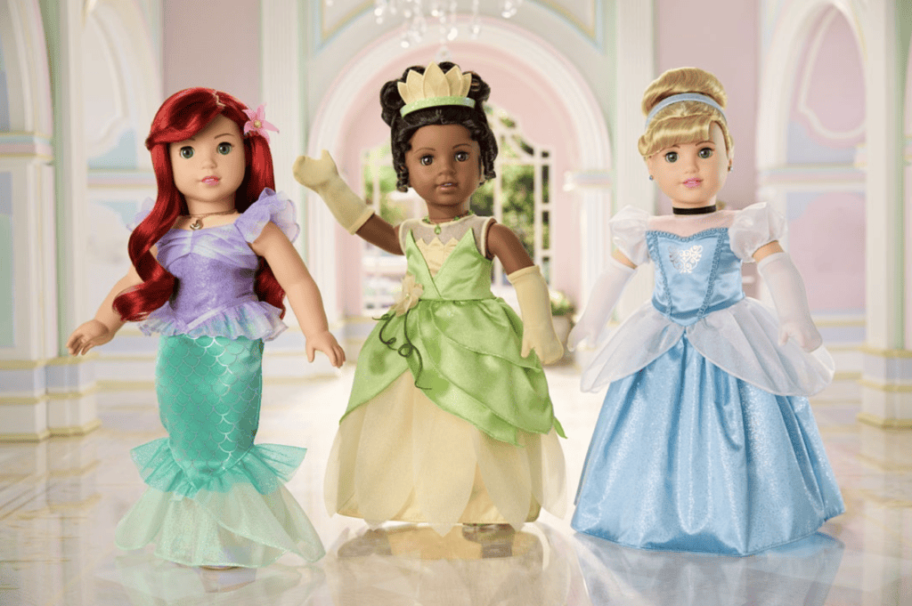 Disney y American Girl nos traen dos colaboraciones este año, empezando por una donde vemos a Ariel, Tiana y Cenicienta y más tarde este año a las hermanas de Frozen. Disponibles en americangirl.com y las tiendas de American Girl en Estados Unidos.