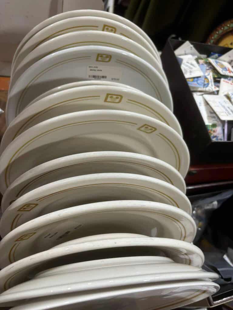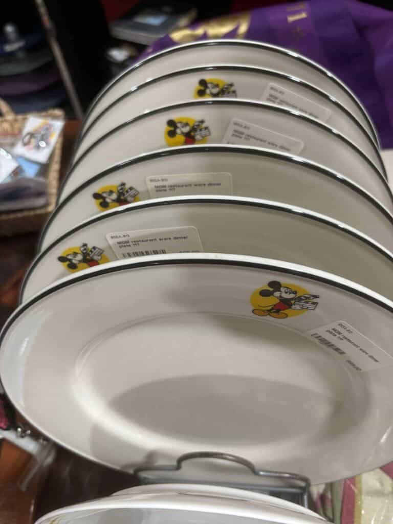Do you have a Disney themed kitchen or simply want to add a hint of Disney to your decor? Check out these tables (wooden) and dishware with logos from Palo, Disney Cruise Line, “MGM”, and more. Prices ranged from $19/plate, upward.