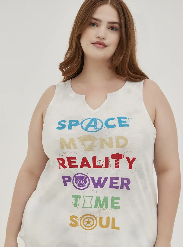 This is one tank top that I definitely need for summer! Representing the six different Infinity Stones, this tank top would be the perfect look for your next trip to Avengers Campus.