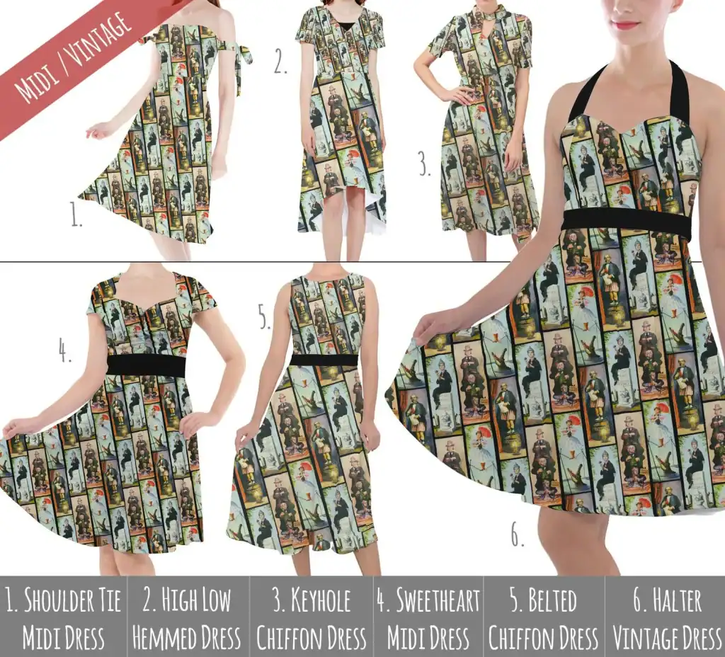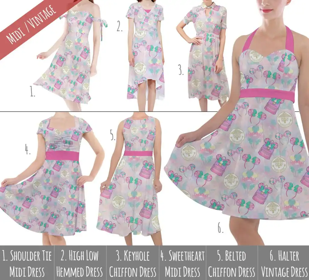 All of these styles are available on Etsy from RainbowRules. Each pattern is available in a whole range of different dress cuts, styles, and sizes. Personally, I love the Sweetheart Midi dress and I have it in several different patterns! However, there is something for everyone!