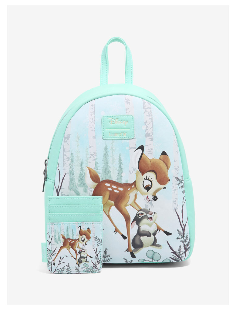 Bambi and Thumper look extra cute playing in the forest on the front of this mini backpack. I love the pop of color that the mint green gives the bag!
