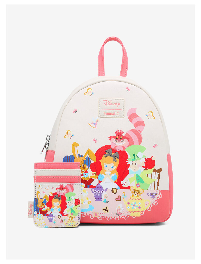 Celebrate your unbirthday with the Alice in Wonderland bag that features Alice, the Mad Hatter, the March Hare, and the Cheshire Cat in the famous tea party scene from the film.