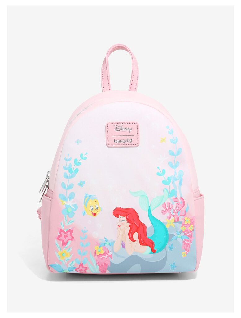 This lovely pink backpack features my favorite Disney Princess, Ariel. She is accompanied by Flounder and most likely daydreaming about Prince Eric.