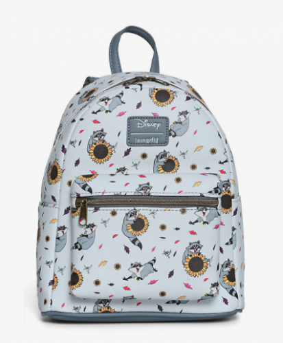 I know this isn’t a princess backpack, but it also showed up with the new sketch backpacks on Hot Topic. It was so cute I didn’t want to leave it out! Meeko and Flit are having fun among the sunflowers and falling leaves! Although this bag is for summer, I think I want it for outfits this autumn!