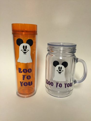 These Boo to You tumblers feature the classic phrase from Mickey’s Not So Scary Halloween Party and also features an image of Mickey’s ghost. So perfect for Halloween! This design is available for: