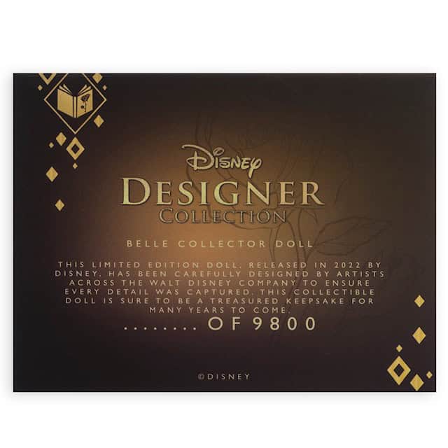 Belle presents as the next princess introduced into the Disney Designer Collection. The bold couture outfit, created by artist Heidi Ticehurst, identifies Belle’s spirit of adventure. Belle joins as the 12th doll added to the collection which is nearing its end of 15 princesses. Disney created only 9800 dolls for this limited edition making her a collector’s item for sure.