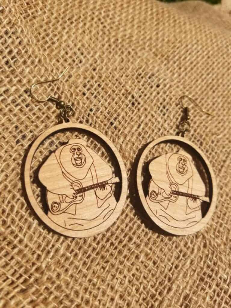 Handmade with a rustic flair, these laser-cut earrings feature the iconic Big Al, guitar, and all in a lightweight wood design that’s kitsch and cute in equal parts. The detail is impressive—his signature hat, his slouchy bear charm, and that familiar musical pose instantly transport you to Grizzly Hall.