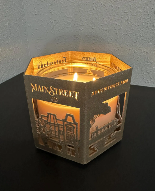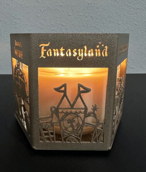 If you’ve ever wished you could bring a little bit of Magic Kingdom home with you, this enchanting candle holder from HappiestPlaceToShop on Etsy does exactly that. Designed to celebrate all six lands of Magic Kingdom, this piece feels like a love letter to the park we all know and adore.