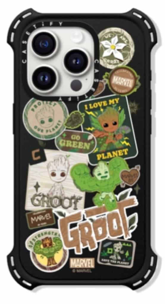 The collection features a range of whimsical and nature-inspired designs that bring the essence of Groot to fans. Casetify boasts the centerpiece of the collection is the Signature Sticker Phone Case, featuring a fun aesthetic that captures Groot’s charm and charisma.