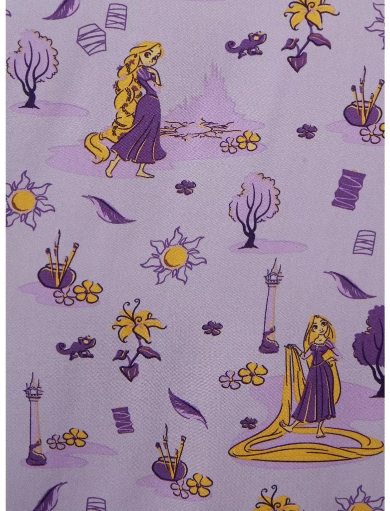 You’ll be ready to see the lights in this Tangled-inspired dress! Pastel fabric features an allover print of Rapunzel, lanterns, Corona suns, and golden flowers, complementing the lace-up waist and puff sleeves perfectly.