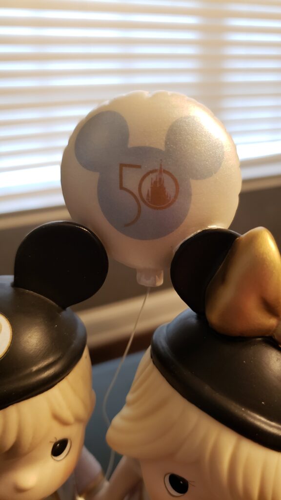 As someone who chose to get dressed up for the occasion on opening weekend of the 50th Anniversary of Walt Disney World, this figurine totally spoke to me! I even bought a balloon myself for the occasion!