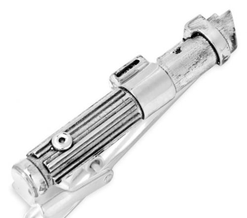 You’ll triumph in the style wars with this Darth Vader Lightsaber Tie Clip. Made from plated base metal and enamel, this finely detailed clip features a hinge-back closure. You can get this lovely piece of bling HERE.