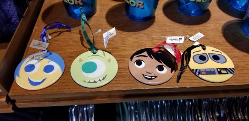 Inside Out, Monsters Inc Coco, and Wall-E are featured in this assortment of reversible ornaments. The inside out ornament features an exuberant Joy on one side, with a furious Anger on the other. The Monster’s Inc ornament of course has Mike and Sully as the feature buddies, with each one glancing off in a different direction. Coco has Miguel and his trusty spirit guide Dante! Wall-E has the robotic pals WALL-E and EVA. It really is exciting to see all these extra WALL-E designs, it’s a Pixar film you don’t often find souvenirs of.