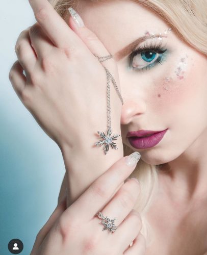 This image is from @rocklovejewelry on IG showing the 2 new pieces being released. The gorgeous Traci Hines is modeling what will most definitely become must-have pieces for a Frozen-inspired look.