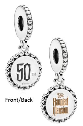 If all that bling and purple are not your thing, there is also a single dangle charm the simply says The Haunted Mansion on one side and 50th on the other. Simple, elegant and gets the point across to commemorate this spectacular attraction. This charm will retail for $65.