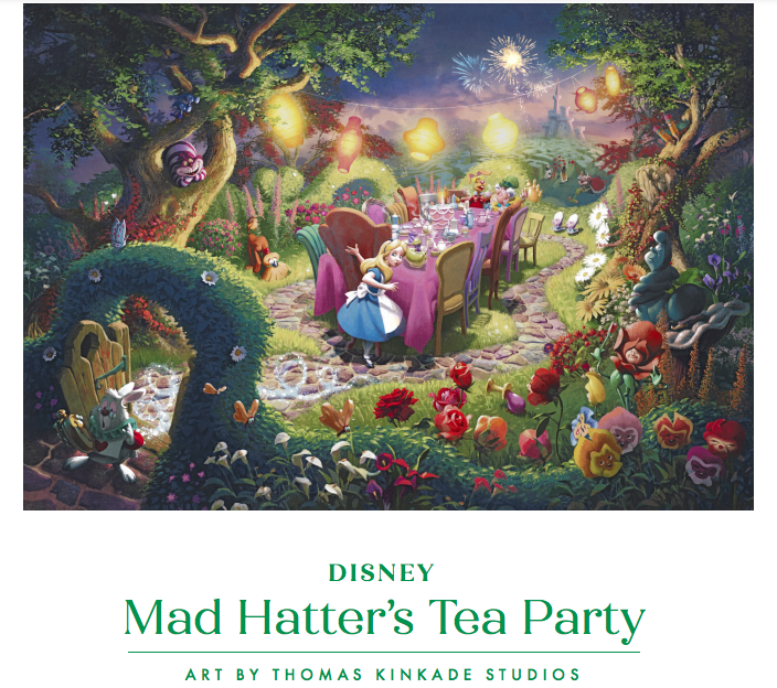 This stunning piece is the follow-up painting to the popular Limited Edition Art Disney Alice in Wonderland, which was published by Thomas Kinkade Studios in 2016. Talk about making us wait a while! I am a huge fan of the tea party and this piece is a must-have for me!
