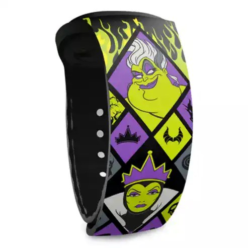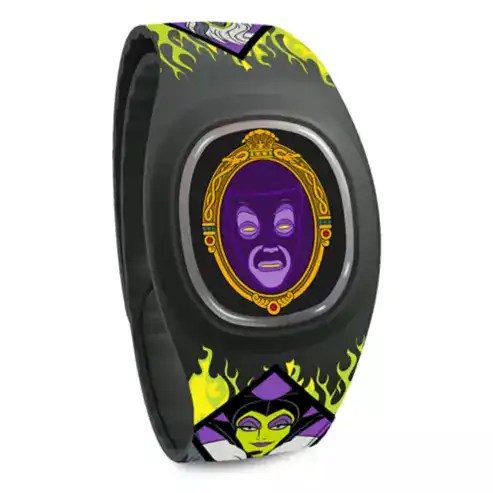 Speaking of Maleficent, Loungefly offers a stunning velvet-covered embroidered bag. This might be the only way you see a softer side of the Mistress of Evil! Even if you don’t have a magical sceptor like Maleficent, you can hold the Magic of Disney on your wrist with the new MagicBand+. Magic Mirror glows upon the face of the band while a diamond pattern shows off the villain’s head pieces and profiles.