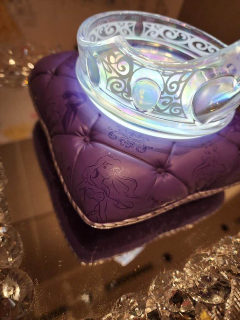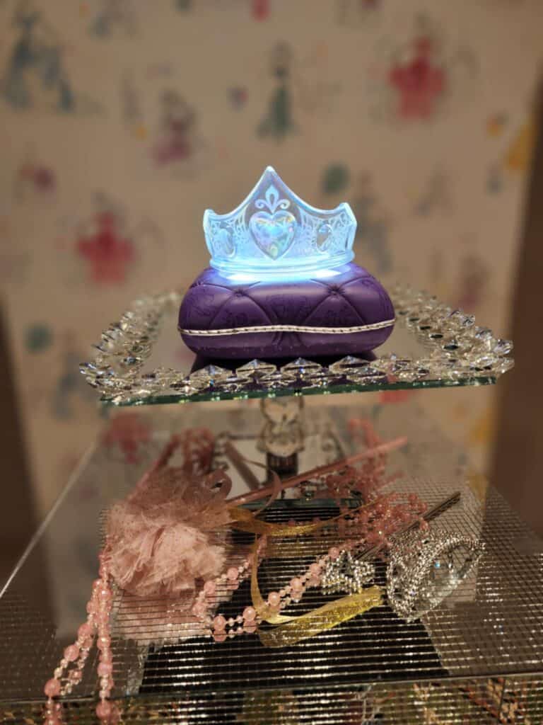 This last one is my absolute favorite! This is a gorgeous crown on top of a “pillow” that features images of all the Princesses! The pillow looks so real! I can see Cinderella, Rapunzel, Mulan, Belle, Jasmine, Tiana and Ariel! I could most definitely be missing someone, though. This one would look perfect in a Princess room!