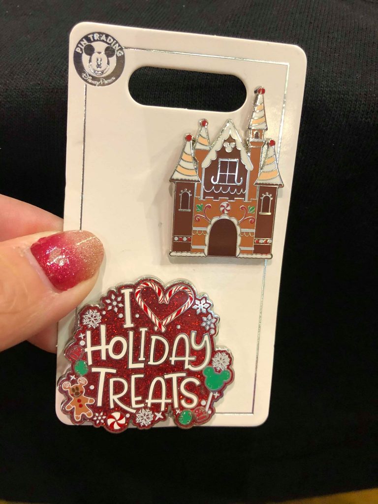 Continuing with the Disney Holiday Snacks theme, we also have a 2 pin set. This set included a delectable looking gingerbread castle and a red pin that says “I love Holiday Treats”. The heart for “love” is made out of candy canes too! One of my favorite Disney holiday things is the gingerbread castle at the Contemporary, so I love this!