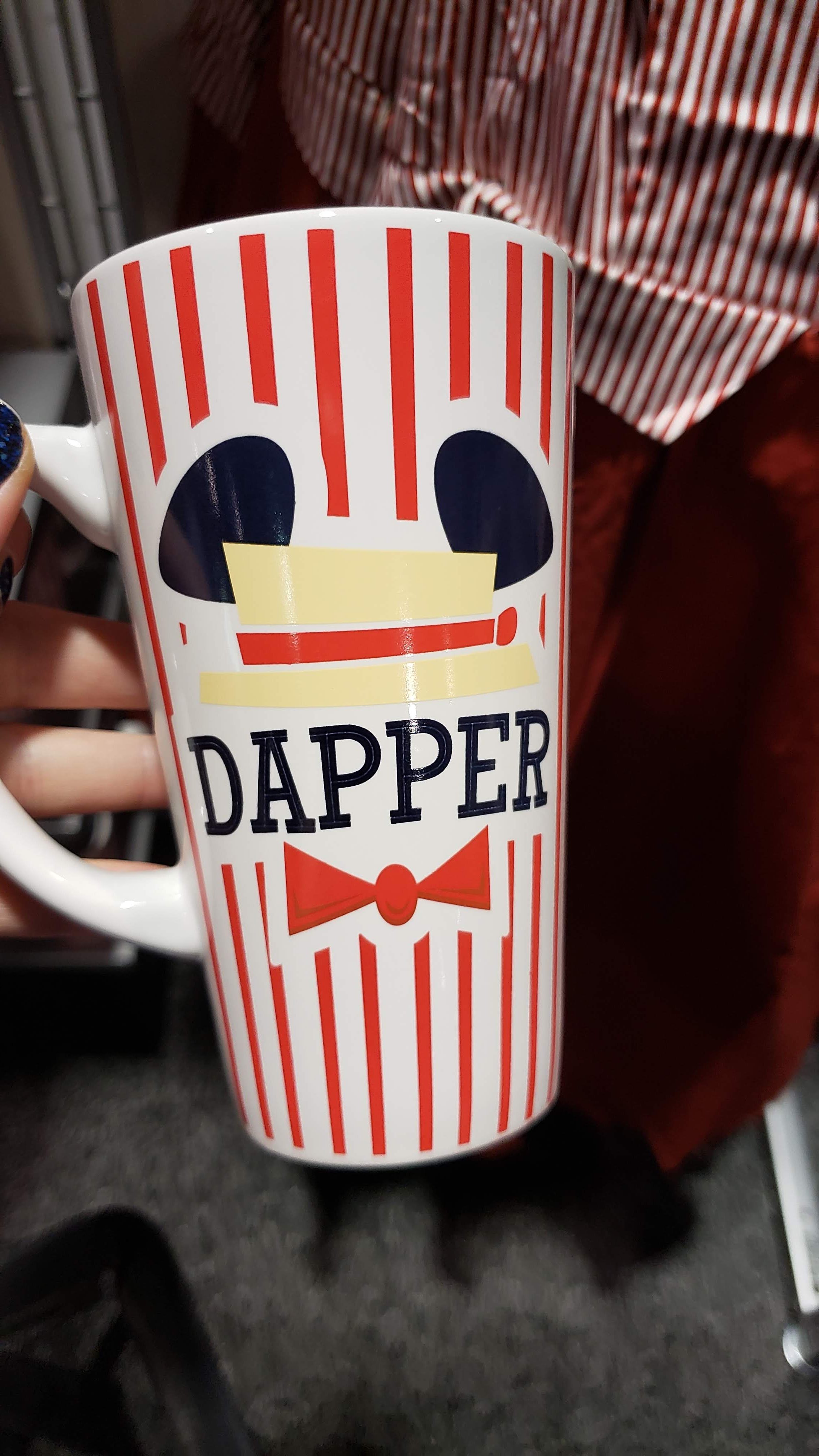 The singing Dans of Main Street are known for their hats, while this may not be their hat, it does feature a Mickey version of it! I love how the hat tops off the word “Dapper” and has a tiny bow tie underneath.
