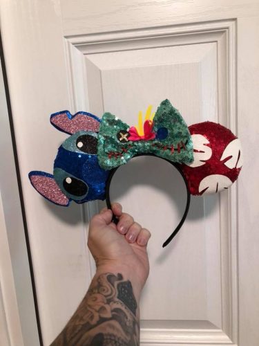 The third set features Stitch’s head as one sparkly ear, Lilo’s dress print as the other sparkly ear, and a Scrump-inspired sparkly bow to bring the whole set together. You really can’t go wrong with any of these ears!