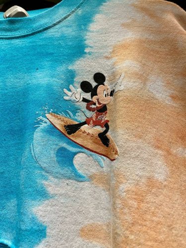 I admit that this Spirit Jersey is much more my style. I LOVE Spirit Jerseys, in general. That’s no secret. This one looks like the sand wish water washing up against it which is SO Hawaii. Throw in the fact that Mickey is surfing and I can almost hear him say Aloha from Aulani!
