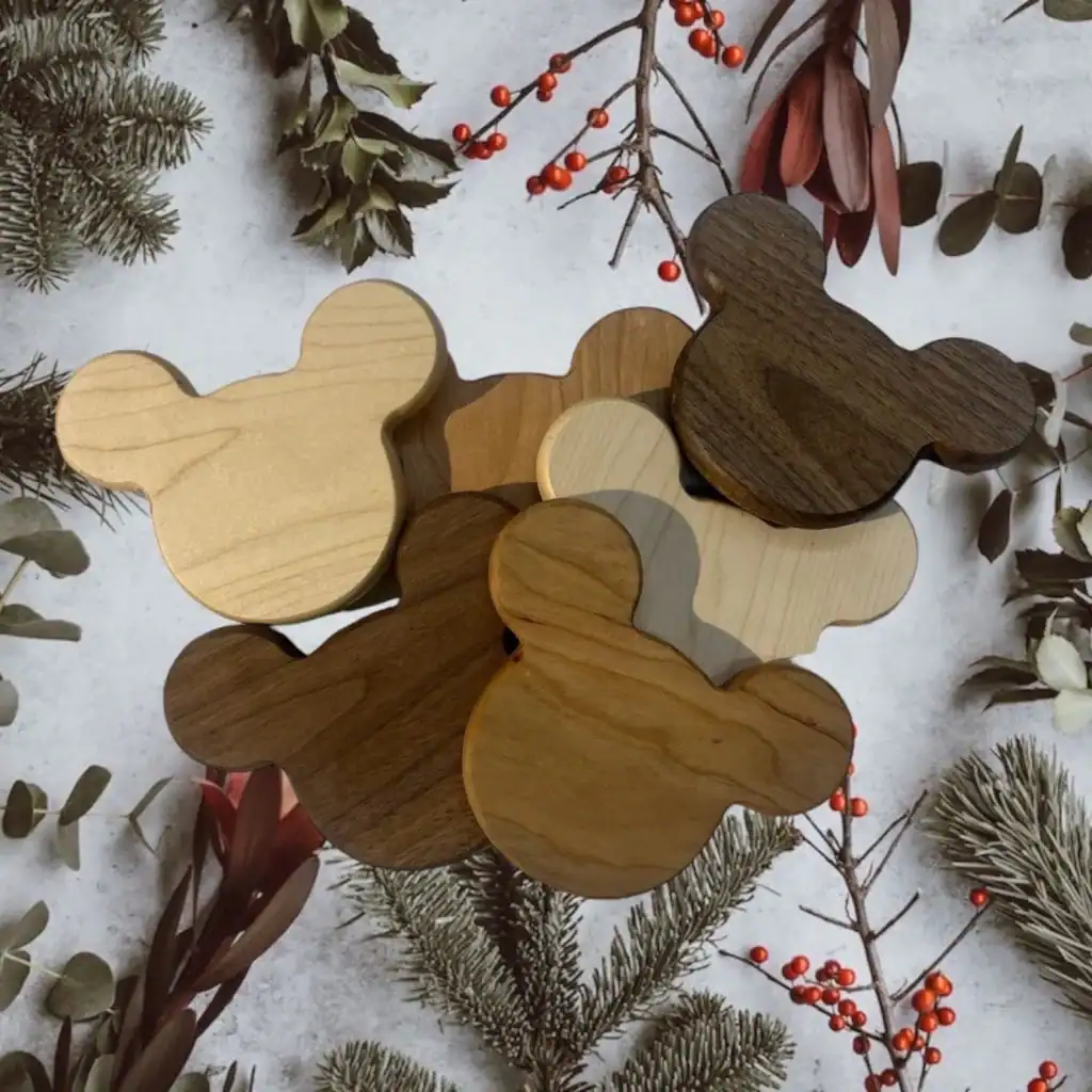 You can never go wrong with a classic Mickey Mouse shape! Add a touch of whimsy and nostalgia to your home decor with our delightful Mickey Mouse shaped wooden coasters. Each coaster is thoughtfully designed and shaped into the iconic silhouette of Mickey Mouse, paying homage to the beloved Disney character. Crafted with care, these coasters are made from your choice of high-quality woods: maple, cherry, or walnut. The natural beauty and unique grain patterns of each wood species add an elegant touch to your tabletops. The base of each coaster measures 3 inches, providing ample space to accommodate your favorite mugs, glasses, or cups. You can find these Mickey Mouse shaped wooden coasters on Etsy from KashsCustomWoodwork for $30.97.