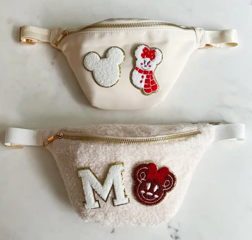 ADENandLOUISE en la plataforma Etsy nos tienen unos bolsos con parches ideales para hacer los pendientes del día o pasar un día de parque en estilo. En colores navideños y texturas invernales con parches que tienen a Mickey y Minnie como muñecos de nieve o galleta de jengibre e incluso al castillo en tonos navideños.