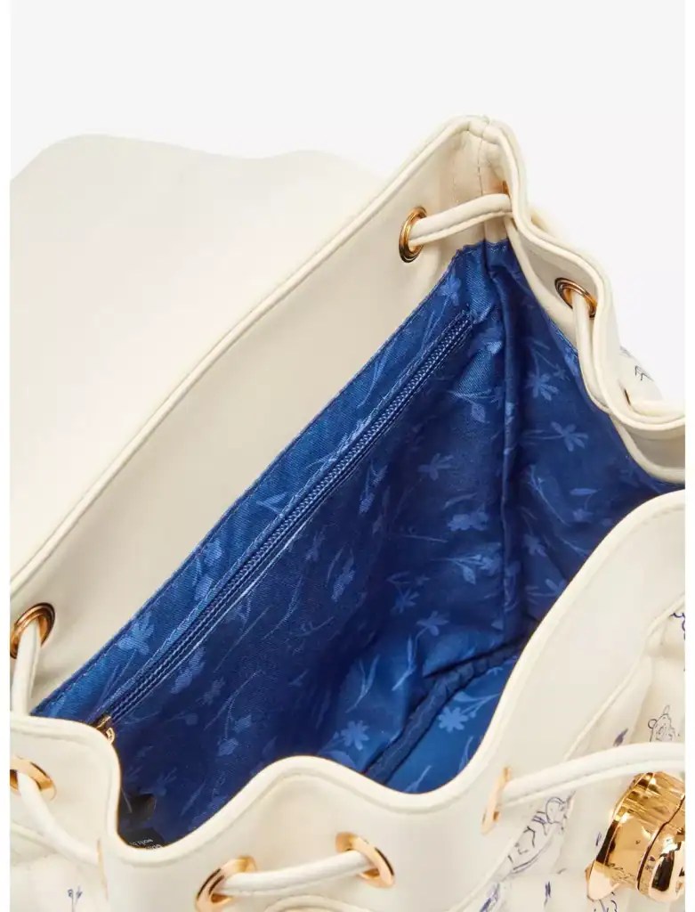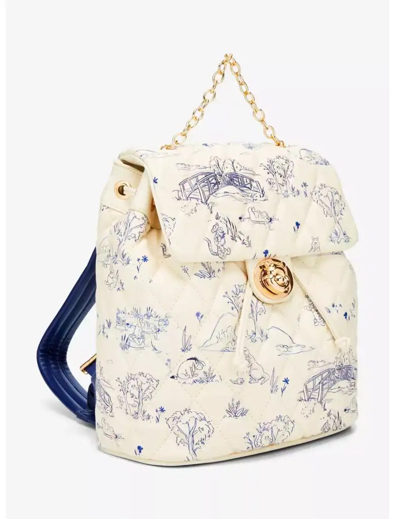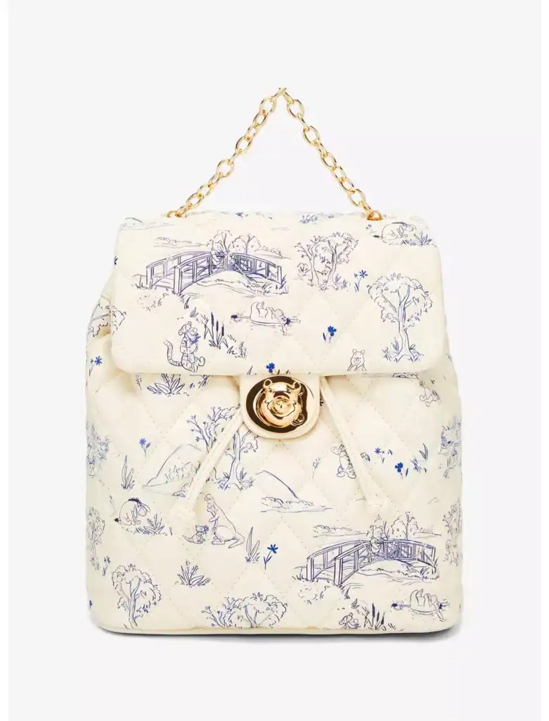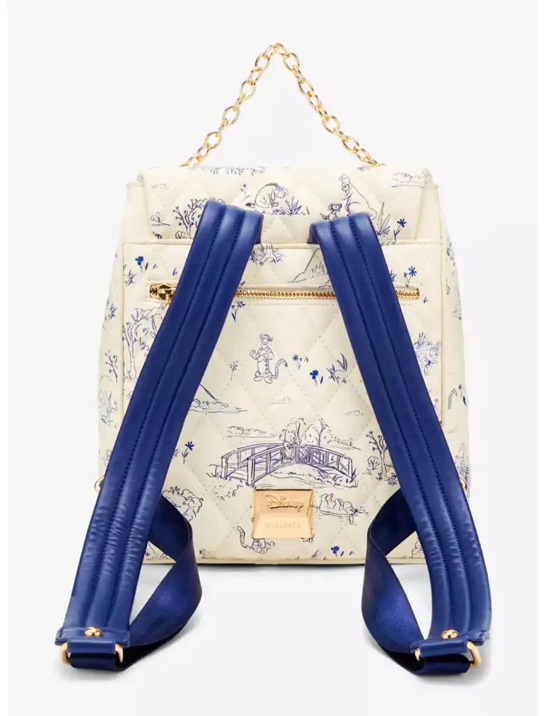 Pack up your supplies for a Hundred Acre Wood adventure! With a chain handle, this Winnie the Pooh backpack features an illustrated print of the wood on a quilted body, fastened with an enamel Pooh Bear charm. I absolutely love how the royal blue straps and lining pop against the cream exterior!