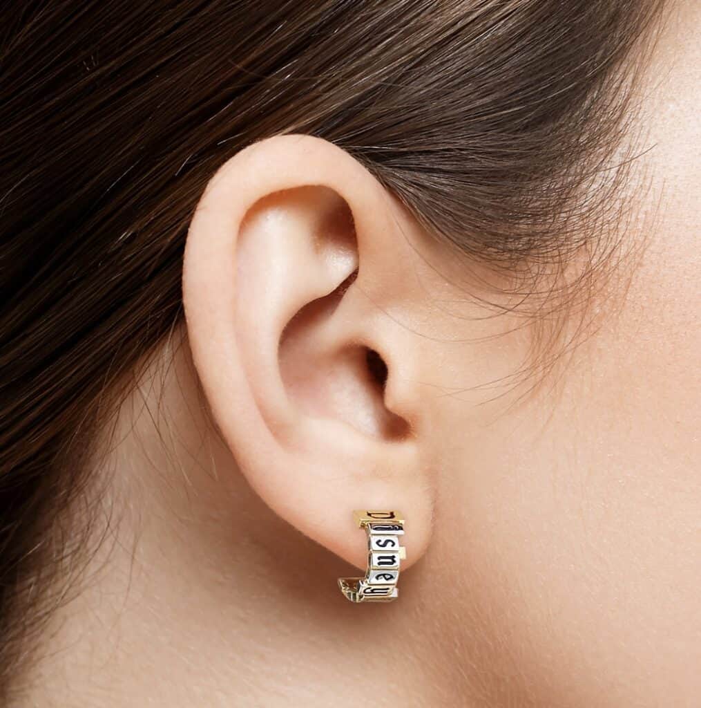Loosely quoting Beyoncé, “If you like it, then you SHOULD put a ring on it!” Crislu ring or earrings…or both! It’s never too much when you’re talking about Disney. Once again, the vintage marquee sign shines through, this time forming a beautiful band for your finger or a pair of curved huggie earrings.