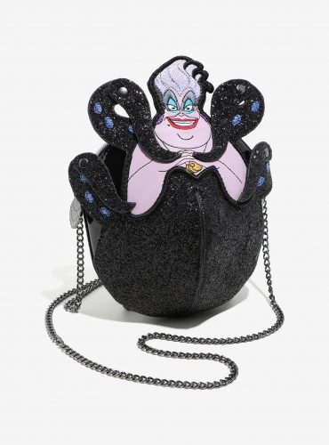 Danielle Nicole brings the wicked witch of the sea to life in an unexpected way using modern elements like patent leather, and sparkling embroidery. Which lends to a contemporary and modern flare that features the classic Disney Villain. The chain link purse strap gives this fiendishly cute bag an extra dash of edge. You won’t have to trade your voice for this stylish bag, but your plush Flounder toy might be a bit nervous around it!