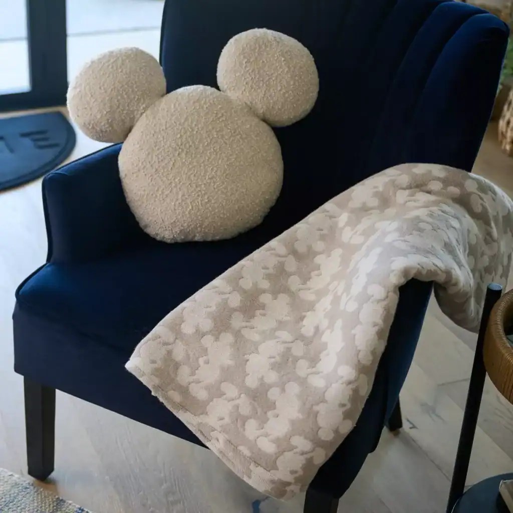 You can never have enough blankets or throw pillows! At least, not in my house! I change mine with the seasons and these are neutral enough that you could just leave them out all year long. That Mickey shaped pillow is weighted! It’s fabulous!