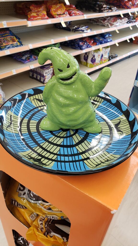 This Oogie Boogie platter is my favorite piece in the collection. I suppose one could put candy on it for the kids but I was thinking more along the lines of using it as a serving platter for a Halloween party! Talk about a conversation starter!