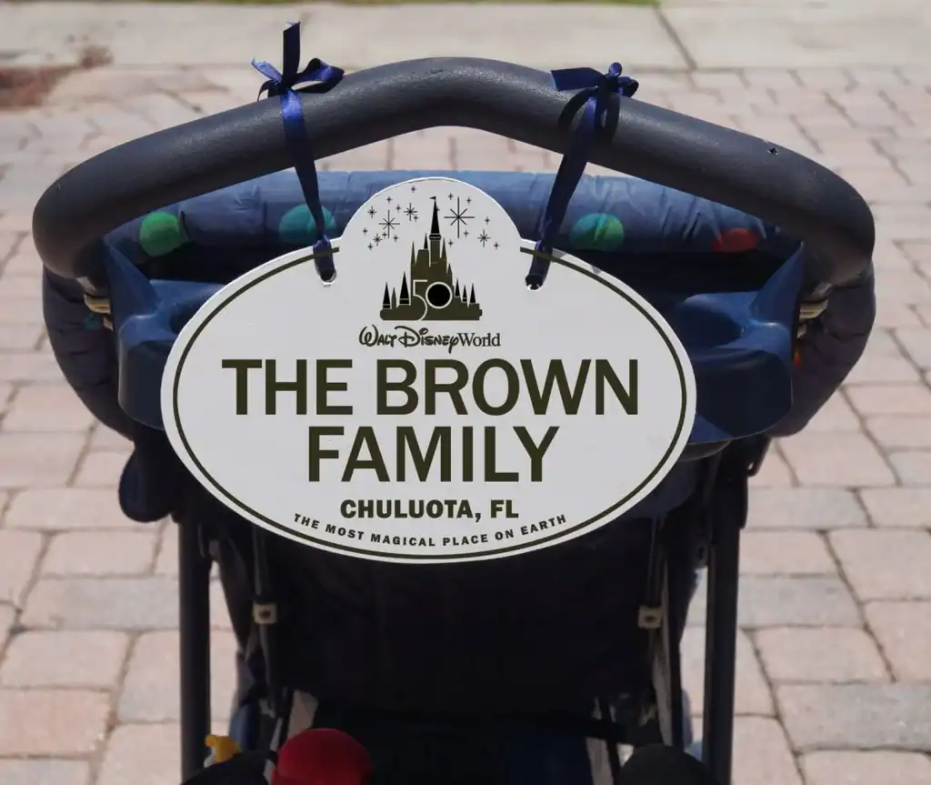 If you are planning a Disney Parks vacation and plan on using a stroller, this one is for you! This Disney Cast Member Nametag Stoller Sign from MagicalLaserCrafts on Etsy is exactly the stroller accessory I have been looking for. With this magical stroller sign, you will never lose your stroller in the masses ever again!