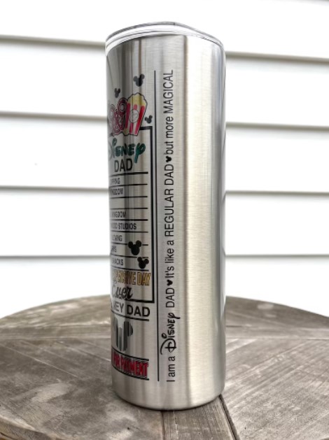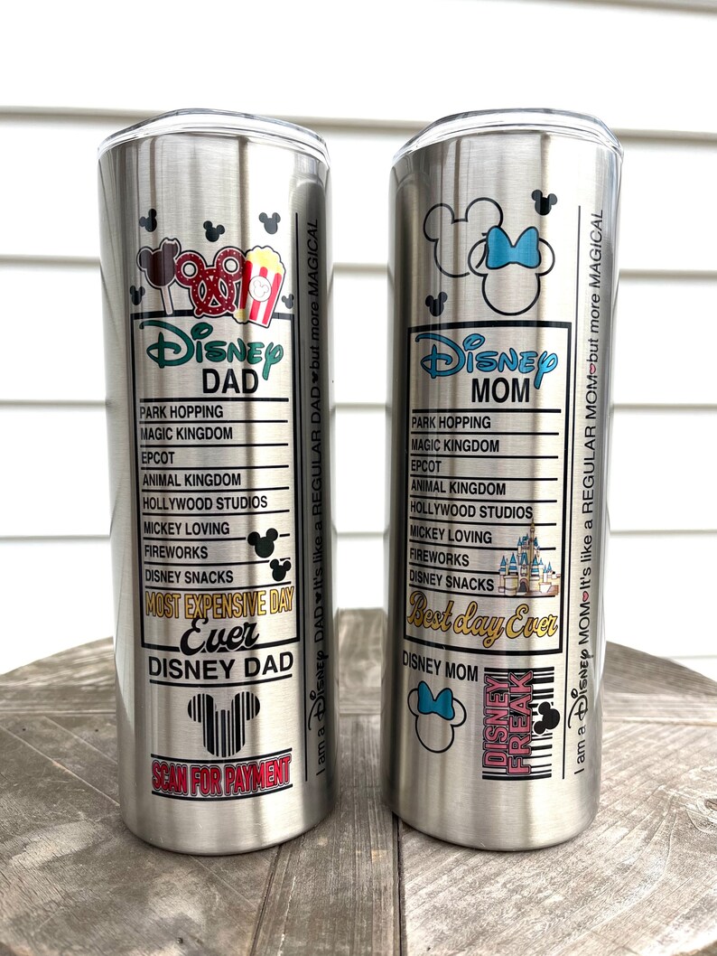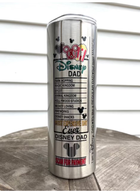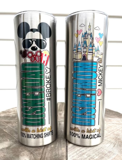 These Disney Dad and Disney Mom Tumblers can be found on Etsy from OneSassyCraftyMama. Pricing starts at $29.99 each.