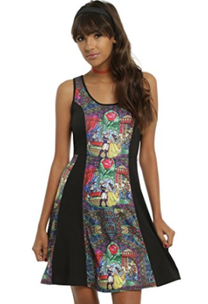 This Beauty and the Beast stained glass panel dress would work on so many different body types! It comes in sizes XS-2Xl. That allows for many different fashionistas to wear this lovely dress.