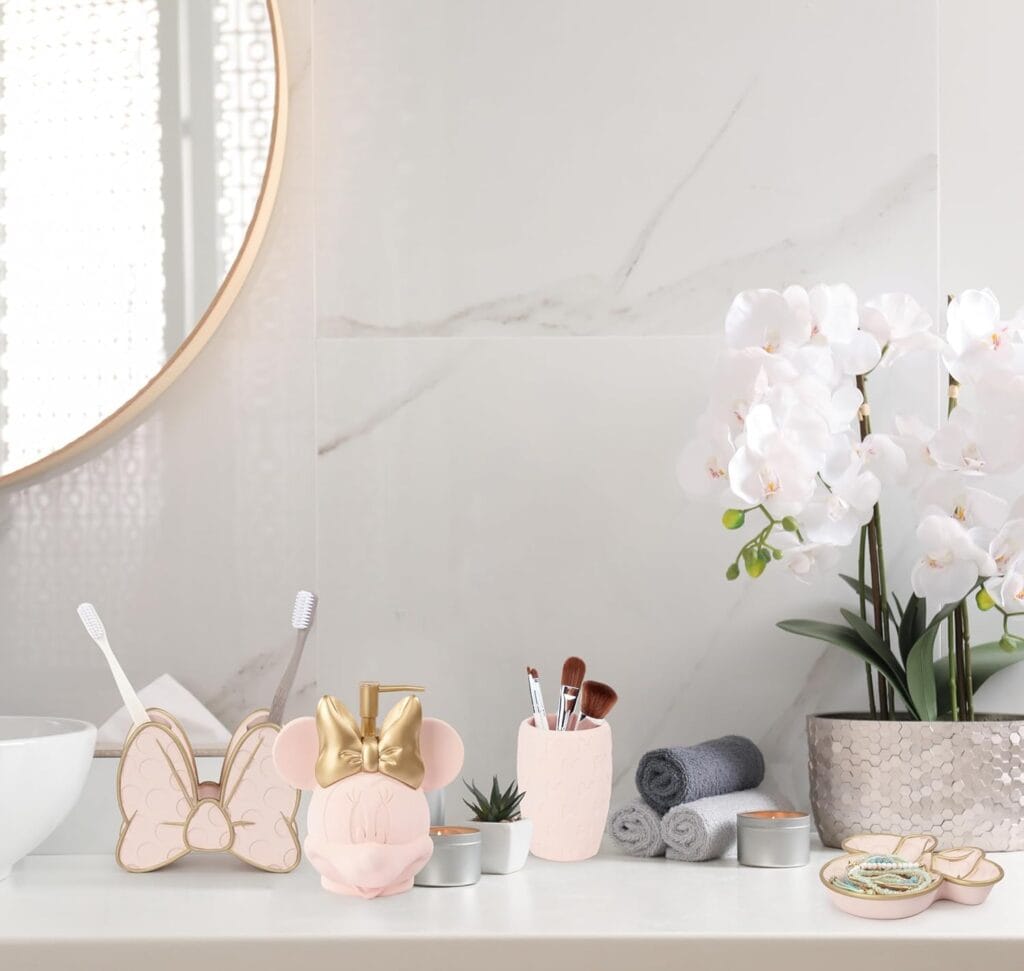 This Blush Minnie Bathroom Set is such a stylish way to add some Minnie Mouse magic to your bathroom, kitchen, or office!