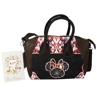 What I love about this bag is that it draws on Minnie Mouse’s traditional black/red/white colors and adds upon them with the untraditional geometric boho pattern. The Minnie applique features a gold stitched bow with boho pattern and her face and ears are crafted into a dream catcher. It is very Urban Outfitters meets Disney!