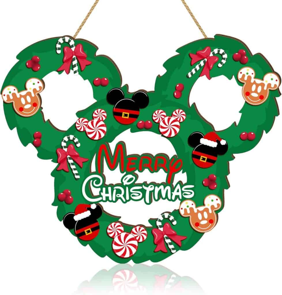 This sign, which you can find here, has everything we love about Disney holiday decor in one place. From gingerbread Mickeys to tasty peppermint mouse heads, I don’t think that we could ask for anything more. Even the candy canes look like they have big, red Minnie bows on them. There are even Santa Mickeys and little berries that almost look like they are in the shape of Mickey heads. But maybe I’ve had just a little bit too much eggnog. And, if all of the Mickeys on the wreath weren’t jolly enough, the fact that the wreath is a big mouse head is just icing on the sugar cookie.