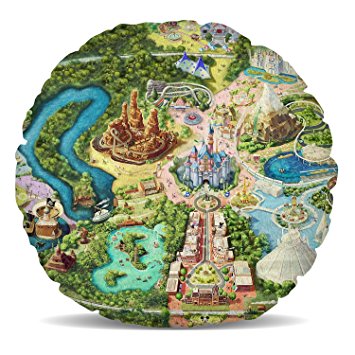This colorful artistry is available on a heart, square, or round cushion/pillow and easily transports one to Fantasyland, Main Street USA, Frontier Land, Adventure Land, and Tomorrow Land.
