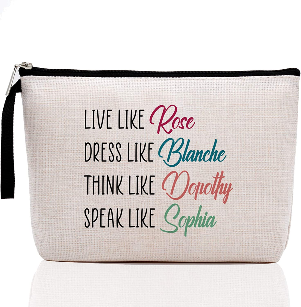 This precious little waterproof bag features the words “Live like Rose, Dress like Blanche, Think like Dorothy, Speak like Sophia.” That combination would make a truly remarkable woman! Plus, this precious little bag can be used for so much more than makeup! It can keep electronics, medicine, makeup, pens and pencils, and so much more organized! Whether you’re traveling across the country or out to the store, it’s still nice to stay organized!
